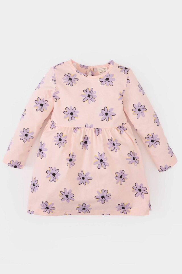 Çiçekli Gülkurusu Kız Bebek Çocuk Müslin Elbise