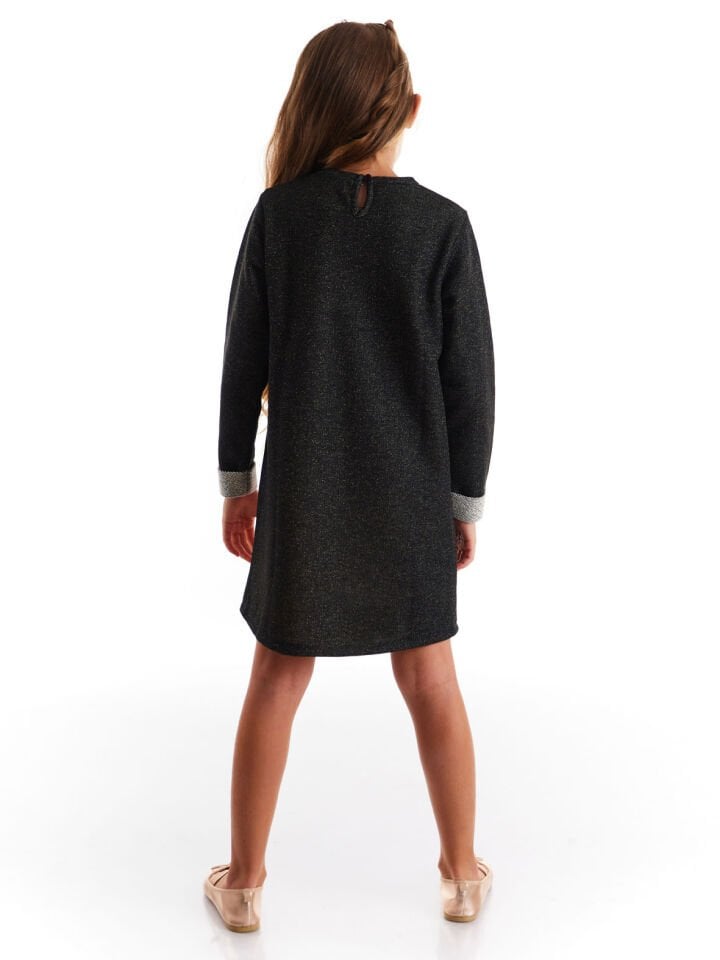 Üzeri unicorn baskılı, kalın kışlık elbise. Unicorn kanatları simli kumaştan 3 boyutlu olarak takılmıştır. Kumaş 3 ipliktir, içinde kendinden altın sarı sim ip ile örülmüş. %63 Polyester %33 Pamuk %4 Metalik Elyaf