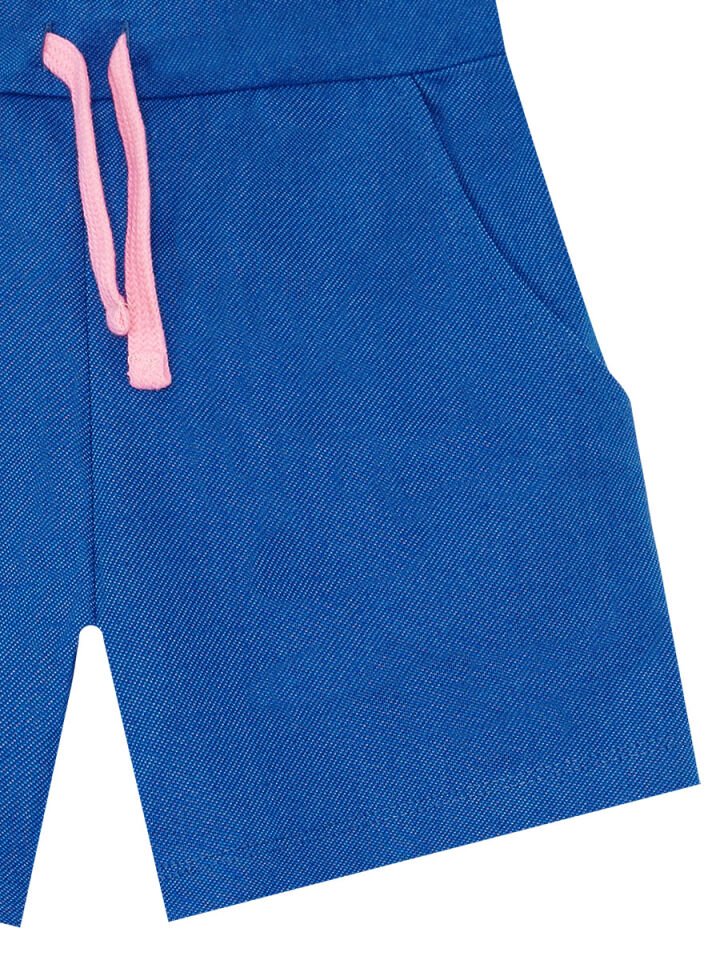 2 parça takım. Tüm yüzeyi kurabiye baskılı, crop-top kesim t-shirt. Şortu denim görünümlü kumaştan üretilmiştir. 2 yan ceplidir. Beli lastik ve kordonludur. Tüm MSHB&G ürünleri çocuk güvenlik kurallarına uygun üretilmekte ve tek tek iğne dedektörlerinden geçmektedir. Üst: %95 Polyester %5 Elastan - Alt: %65 Polyester %35 Pamuk
