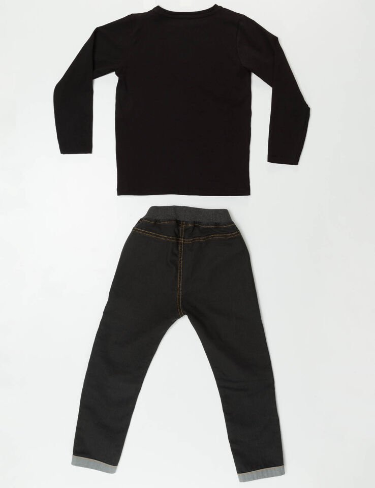 2'li takım. Varak baskılı t-shirt ve jean pantolon. Alt: %98 pamuk %2 elastan, top: %92 pamuk %8 elastan