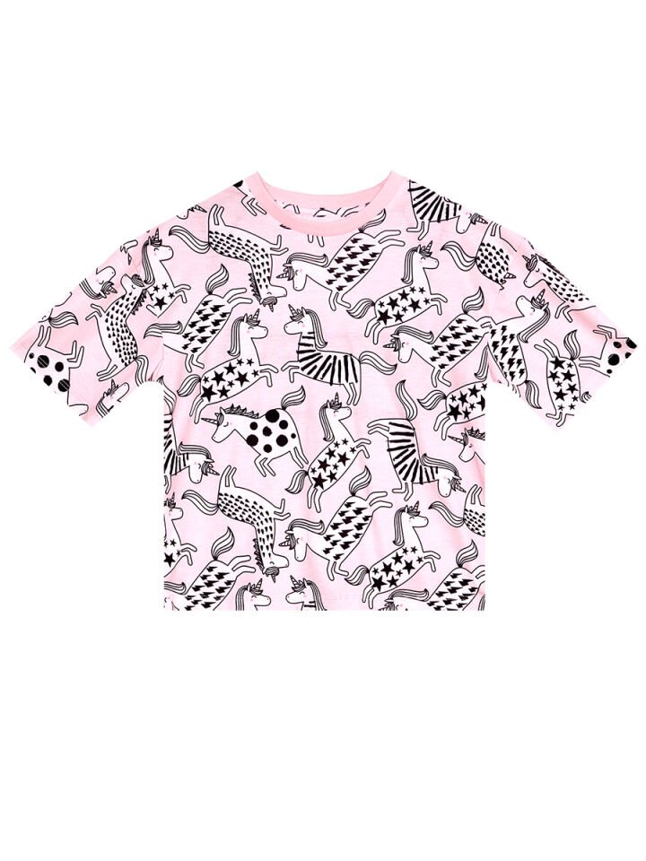 2 parça takım. Üzeri unicorn baskılı, crop-top kesim t-shirt. Pamuklu, antresit melanj kumaştan mini şort. Şortun bel lastiği verev kesimlidir. Tüm MSHB&G ürünleri çocuk güvenlik kurallarına uygun olarak üretilmekte ve iğne dedektörlerinden geçmektedir. Üst: %90 Polyester %10 Elastan - Alt: %50 Pamuk %50 Polyester